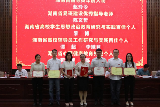 湖南省辅导员年度人物、湖南省易班建设优秀指导老师、湖南省高校学生思想政治教育百佳个人、湖南省高校辅导员工作百佳个人、湖南省心理健康教育先进个人