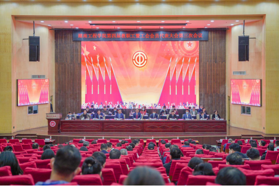 战鼓催征马蹄疾,砥砺奋进正当时。4月29日上午8时10分,beat365官网第四届教职工暨工会会员代表大会第三次会议在一报告厅举行,党委副书记、校长易兵作学校工作报告,党委委员、副校长向前作学校工会工作报告,副校长陈赤平作提案征集和办理情况说明,党委委员、副校长罗毅平作《beat365官方网站绩效工资改革实施办法(试行)》说明。党委书记陈岳堂作总结讲话。全体校领导、党委委员出席会议,157名正式代表参加会议。