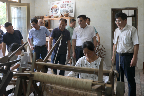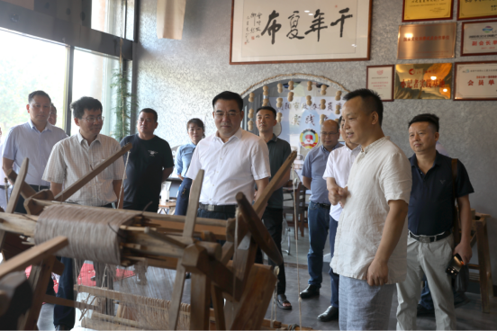 纤纤擢素手,札札弄机杼……29日下午,在梁氏夏布厂及展示中心、浏阳夏布实践基地,beat365官网考察团一行还未进门就已经听到了声声机杼,数十名工人正在忙于这经纬线之间穿梭的艺术——夏布织造。从苎麻种植、生态环境,到夏布织造的每一个环节、每一种工艺的流程,大家都认真参观学习,深入了解浏阳夏布悠久的历史文化,以及夏布打麻漂白、绩纱挽麻团、刷浆、织布、漂洗、印染等制作工序,直观、形象、生动地感受浏阳夏布这项非物质文化遗产的无穷魅力。