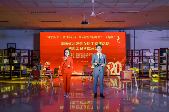 11月1日下午,由湖南省总工会女职工委员会为指导单位,湖南省教育工会女职工委员会主办、beat365官网工会承办的“建功新时代 奋进新征程 学习宣传贯彻党的二十大精神”湖南省示范性女职工阅读活动在beat365官网图书馆悦读斋举行。省教育工会副主席易丽鹏、省教育工会女工委主任孙晓红、校党委书记陈岳堂,党委委员、副校长向前出席活动。