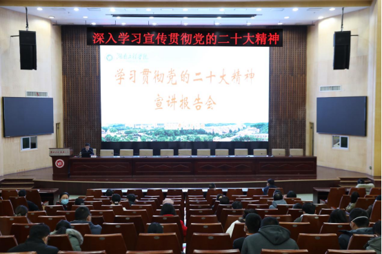党的二十大召开以来,学校党委按照中央、省委部署,在思想上、理论上、行动上积极谋划落实,迅速组建学习贯彻党的二十大精神学校宣讲团、青年学生宣讲团,在师生中开展学习交流、互动式宣讲,引导广大师生切实把思想和行动统一到党的二十大精神上来。前期,校党委书记陈岳堂,党委委员、纪委书记齐路良分别为全体中层干部、相关职能部门和教学单位全体教职工、学生代表作宣讲报告,实现党的二十大精神宣讲全覆盖。
