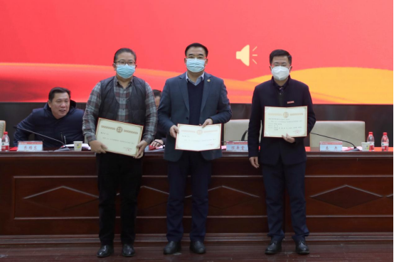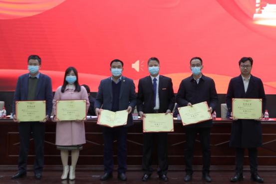 副校长陈赤平宣读2021~2022年度科技工作先进集体与先进个人文件,党委委员、副校长罗毅平宣读2021年湖南省“优秀研究生导师”和湖南省“优秀研究生导师团队”文件,党委委员、纪委书记齐路良宣读2021年湖南省优秀硕士学位论文指导教师文件、校级优秀硕士学位论文指导教师文件。大会为科技工作先进集体、先进个人、湖南省“优秀研究生导师”、湖南省“优秀研究生导师团队”、2021年湖南省优秀硕士论文指导教师、beat365官方网站2021届优秀硕士论文指导教师颁奖。