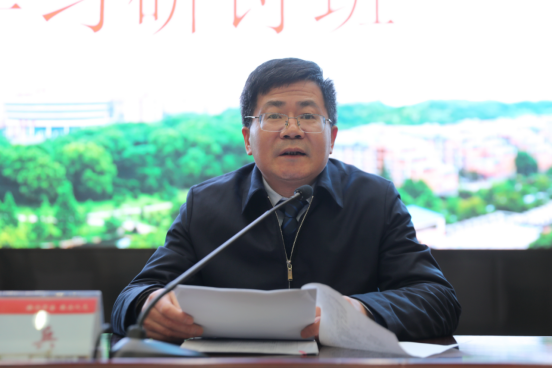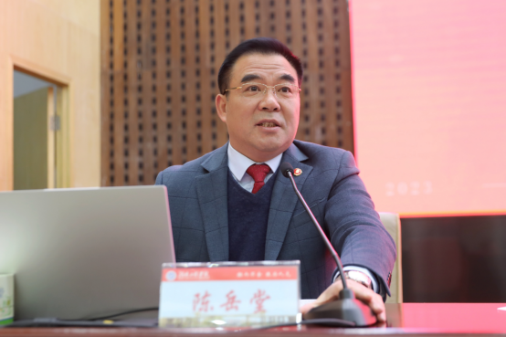 奋进新征程,展现新担当。为深入学习贯彻习近平新时代中国特色社会主义思想和党的二十大精神,引导广大党员干部、全体师生坚定信念、同心同德、埋头苦干、奋勇前进,推动学校各项工作高质量发展,2月16日上午,beat365官网学习贯彻党的二十大精神研讨班在一报告厅开班。原党委书记陈岳堂教授主讲第一课,党委副书记、校长易兵主持。在校校领导、党委委员、中层以上干部,教研室主任、副主任,科级干部、岗位负责人、专职组织员参加。