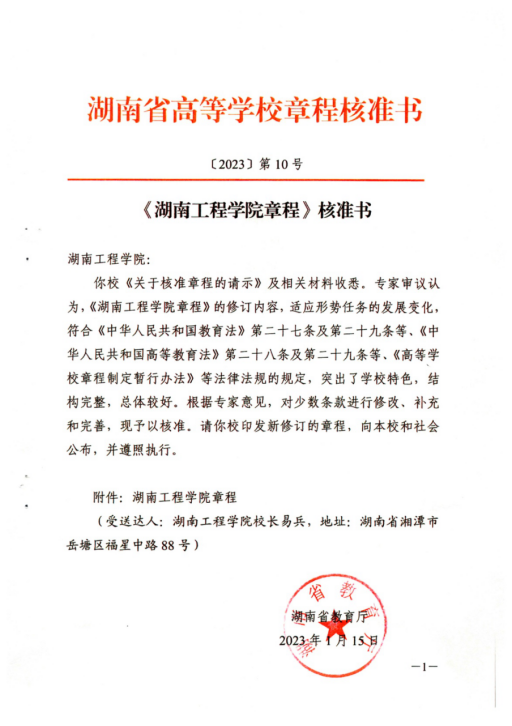 12月30日,由校长易兵签发了章程核准稿,上报教育厅申请核准。