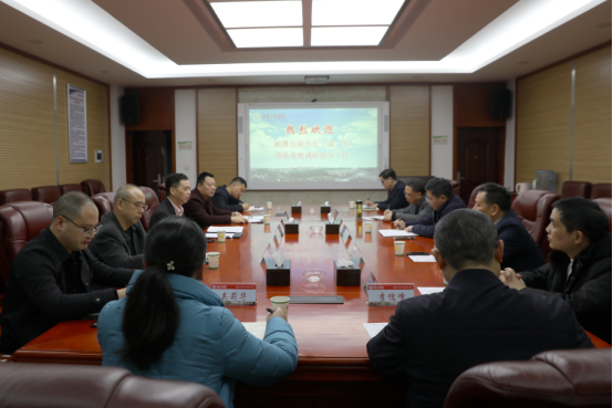 2月28日上午,湘潭市人民政府副市长丁诚一行来校调研beat365官网校友回潭招商引资工作。校党委副书记、校长易兵出席并主持座谈会,湘潭市人民政府副秘书长郭晓春、湘潭市商务局二级调研员王维,校党委委员、副校长魏克湘,正校级督导员娄炳林,科技处、校友联络中心相关负责人参加。