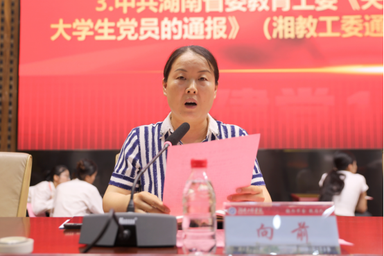 会上,党委委员、纪委书记齐路良宣读《beat365官方网站“光荣在党50年”老党员纪念章颁发党员名单》,党委委员、副校长张小刚宣读教育部办公厅《关于公布第三批全国党建工作示范高校、标杆院系、样板支部培育创建单位名单的通知》,党委委员、副校长向前宣读中共湖南省委教育工委《关于公布全省高校党组织“对标争先”建设计划第三批项目评选结果》,党委委员、副校长魏克湘宣读中共湖南省委教育工委《关于表彰2023年度湖南省普通高校优秀大学生党员的通报》。