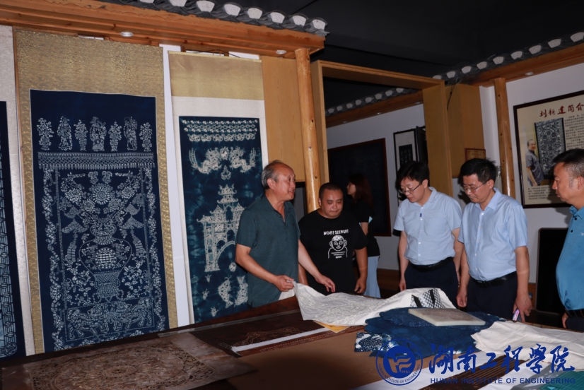 8月18日,易兵一行到国家级非物质文化遗产“蓝印花布印染技艺”代表性传承人刘新建工作室调研纺织非物质文化遗产传承与创新发展情况。刘新建详细介绍了蓝印花布一千三百多年的扎染历史和发展现状,他表示,学校此次“蜡染扎染实习基地”的挂牌,必将促进双方为民间非物质文化遗产的传承与发扬、蓝印花布产业的做大做强深度合作和共同发力。