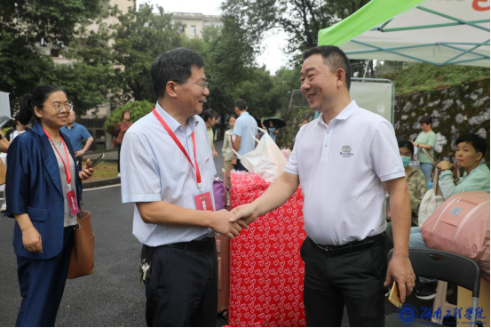 9月15日,党委副书记、校长易兵,党委委员、副校长张小刚带队在主校区(北)、滨江校区、南校区现场检查指导迎新工作,亲切看望前来报到的2023级新生及家长,慰问参与迎新工作的师生员工,宣传部、学生工作部、团委等职能部门负责人陪同。