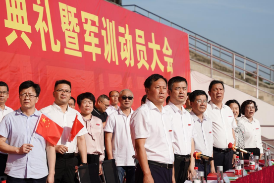 开学典礼仪式最后,校领导为新生代表佩戴校徽,全体新生在国旗下进行入学宣誓。现场师生一起合唱《我和我的祖国》,用真情唱响对党、对祖国的热爱和敬意。