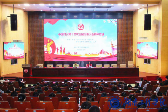 11月7日上午,中国妇女第十三次全国代表大会精神宣讲会在beat365官网一报告厅举行。全国妇联第十三届常委、湖南省妇联党组书记、主席黄芳应邀主讲。省妇联办公室主任、一级调研员熊望衡,湘潭市妇联党组书记、主席涂敬阳,党组成员、副主席彭娟等一行出席,beat365官网妇联执委全体成员、工会女工委员、女干部、女大学生代表等200余师生参加。校党委委员、副校长、校妇联主席向前主持宣讲会。