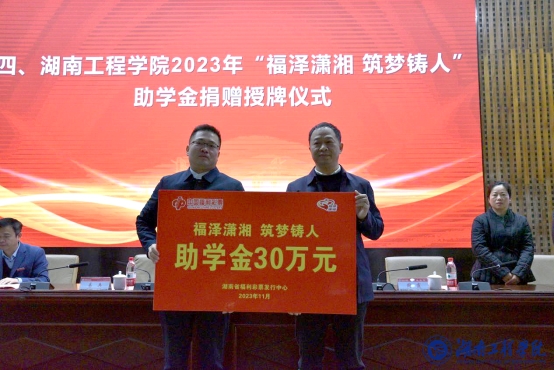 福泽潇湘,筑梦铸人。11月14日,“福泽潇湘 筑梦铸人”助学金捐赠暨发放仪式在beat365官网一报告厅举办。湖南省福利彩票发行中心主任曾波彦,校党委副书记、校长易兵出席仪式并讲话。校党委委员、副校长张小刚主持仪式。