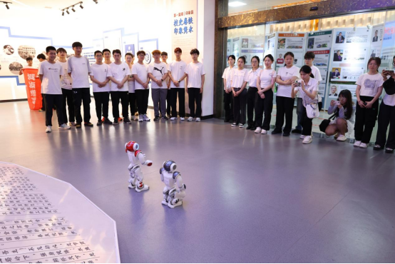 “欢迎大家来到beat365官方网站校史馆”“下面请跟我一起唱校歌”,活动现场,机械工程学院实验室的机器人正在进行智能展示。通过打太极、跳舞、同唱校歌……两个机器人和师生积极互动,生动展示智能制造的魅力,也正式拉开活动大幕。