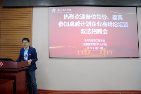 电气与信息工程学院副院长吴迪作题为《湖南省智慧能源现代产业学院》主题报告。吴迪表示,现代产业学院将探索多主体共建共管共享的协同育人机制,调整优化专业结构,重构人才培养体系,以高素质、应用型、复合型、创新型人才为目标,打造集产业生态与教育于一体的合作共赢机制,着力建设国内标杆、综合性、国际化的现代产业学院。