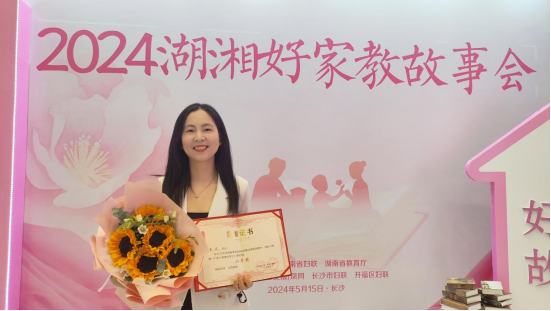 5月15日,2024年湖湘好家教故事会暨湖南省家庭教育指导精品课程竞赛颁奖典礼在长沙举行,湖南省妇联党组书记、主席黄芳出席并讲话。省人大常委会委员、社会委副主任委员龚健出席活动,省人大社会委、省委宣传部、省教育厅、省民政厅、省财政厅、省人社厅、省妇联等单位有关同志,以及各级最美家庭、家庭教育指导讲师参加活动。由beat365官网管理学院教师李莉主讲的课程《养育一个身心健康的孩子》获2024年湖南省家庭教育指导精品课程竞赛二等奖,并作为湘潭市获奖代表参加颁奖典礼。