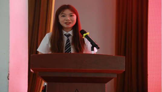 毕业生代表经济学专业2020级学生张雪仪代表全体毕业生发言。她分享了自己的求学经历,表达了对母校、老师和同学们的感激之情。她表示:“作为新时代的青年学子,我们要肩负起新时代的重任,不负时代,不负韶华,成为新时代奋勇前进的搏击者,带着母校的期望,脚踏实地,砥砺前行。”