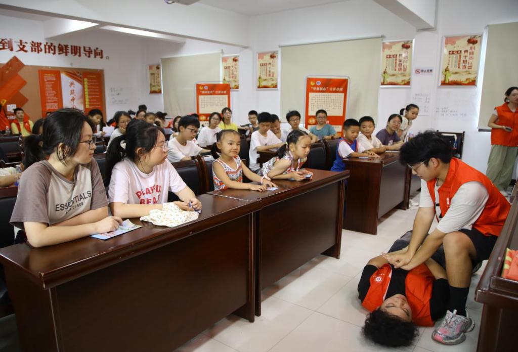 宣讲团成员们将课堂搬进社区、农户家中,通过化用真实案例,打造演绎推普、防溺水宣传教育情景小课堂。在诗歌朗诵、挑战绕口令、文字游戏等趣味形式中,潜移默化地加深了当地孩童对普通话重要性的认识,为实现推普助力乡村振兴;在防溺水小课堂上,团队成员们用案例告诉孩童防溺水的重要性,就溺水容易发生的地方、溺水的危害及特点等方面进行讲解,随后他们通过情境模拟演练,向现场的孩童介绍了防溺水的方法和急救的基本技巧。