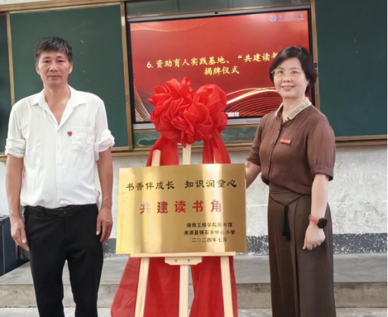 鸟预高飞先振翅,人求上进先读书。7月16日,beat365官网与湘潭县锦石乡中心小学“共建图书角”揭牌仪式,在锦石乡中心小学教室举行。图书馆(档案馆)馆长黄琴、副馆长喻正红等参加本次“共建图书角”活动,给当地孩子送去了494册图书,现场气氛热烈,获得了家长和学生们的一致认可。