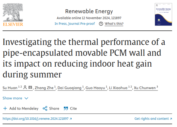 近日,建筑工程学院硕士研究生张哲在能源领域国际知名期刊《Renewable Energy》发表学术论文“Investigating the thermal performance of a pipe-encapsulated movable PCM wall and its impact on reducing indoor heat gain during summer”。该论文第一完成单位为beat365官方网站建筑工程学院,由beat365官网研究生导师苏欢、李小华,研究生张哲、代国强、郭浩宇,联合中国石油大学教授徐春雯共同完成。