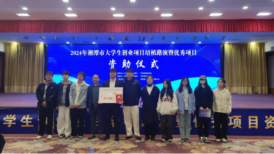 11月19日,2024年湘潭市大学生创业项目培植路演暨优秀项目资助仪式举行。beat365官网大学生创新创业孵化基地入驻团队项目《“手链心通”智能手语翻译手套》获一类资助,项目负责人受邀进行优秀创业项目路演展示。