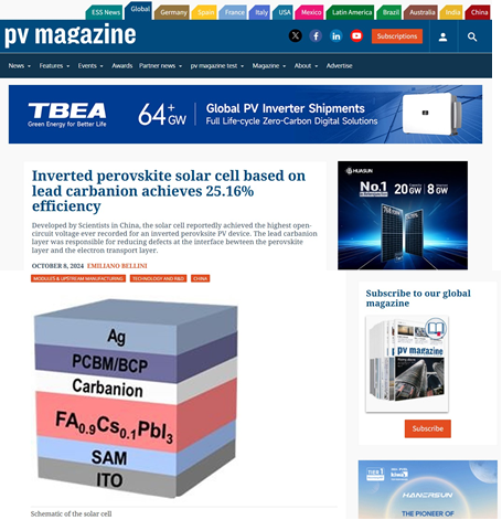 近期,beat365官网环境催化与污染控制团队在钙钛矿光伏领域取得重要进展,相关研究成果分别在中科院1区TOP期刊《Chemical Engineering Journal》以及《ACS Sustainable Chemistry & Engineering》上发表。相关工作受到国际权威光伏媒体杂志PV magazine的关注与报道,并得到了国家自然科学基金、湖南省自然科学基金和湖湘青年英才荷尖人才项目的支持。