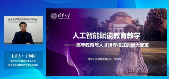 首场培训《人工智能赋能教育教学——高等教育与人才培养模式的重大变革》于3月13日下午举行,特邀清华大学在线教育中心主任、教育部在线教育研究中心秘书长王帅国担任主讲。讲座立足高等教育发展前沿,系统阐释了生成式人工智能技术对教育模式重构的深远影响,重点围绕“教育理念革新”“教学过程优化”“评价体系转型”三个层面展开论述。通过解析清华大学“雨课堂”智慧教学改革等典型案例,展示了人工智能在个性化学习支持、教学资源开发、教育质量监测等领域的实践成果。