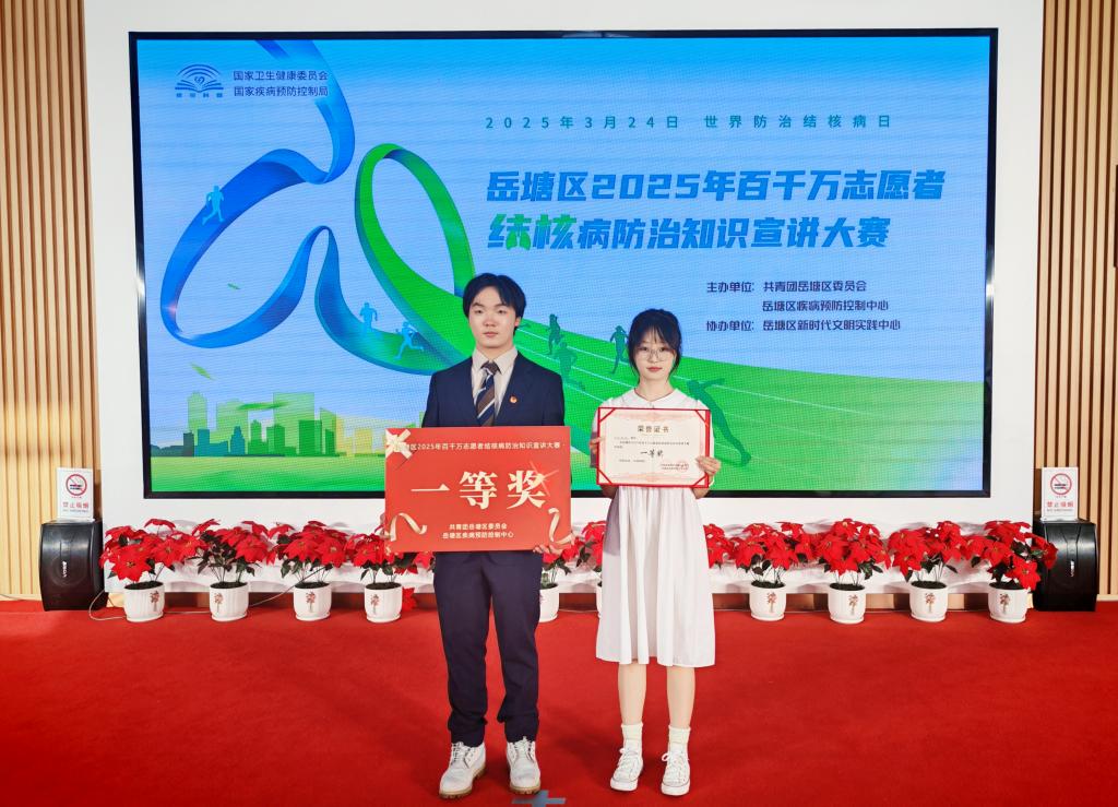 3月24日下午,由共青团岳塘区委员会、岳塘区疾病预防控制中心联合主办的岳塘区2025年百千万志愿者结核病防治知识宣讲大赛在岳塘区新时代文明实践中心举行。beat365官网由“五彩湖工”志愿者、校红十字协会会员何昊城、向苗苗等6人组成的团队获大赛一等奖。
