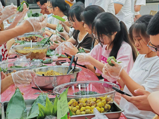 “第一次包粽子,虽然形状不完美,但成就感特别强!我们充分感受到了学校的的关怀与温暖,更体会到了学校把我们每个学生的成长都放在心上!”电气与信息工程学院2022级学生刘锋表示。老师们也融入学生中,一边包粽子一边与学生们亲切交流,关心他们的学习生活情况。