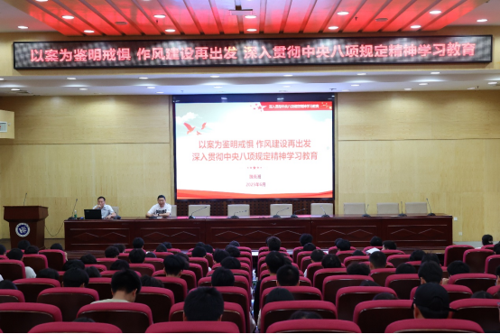 课上,魏克湘以中央八项规定精神为核心主线,从“中央八项规定的内涵”“中央八项规定精神的实质”“违反中央八项规定精神的具体表现”三大维度展开深入讲解。他紧密结合高校实际工作与生活场景,选取“舌尖上的腐败”“车轮上的特权”等七大典型警示案例,对违反中央八项规定的各类行为进行抽丝剥茧式的剖析,以生动鲜活的案例引导在场师生深入思考,明晰纪律红线与行为底线。