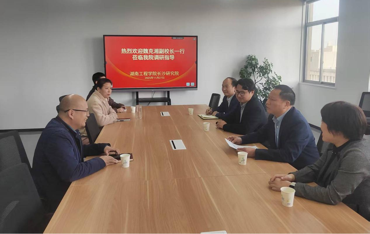 11月27日下午,党委委员、副校长魏克湘一行到长沙研究院调研指导,聚焦场地规划优化、企业孵化培育、学生实习实践融合等核心工作精准施策。教务处、机械工程学院相关负责人参加调研。