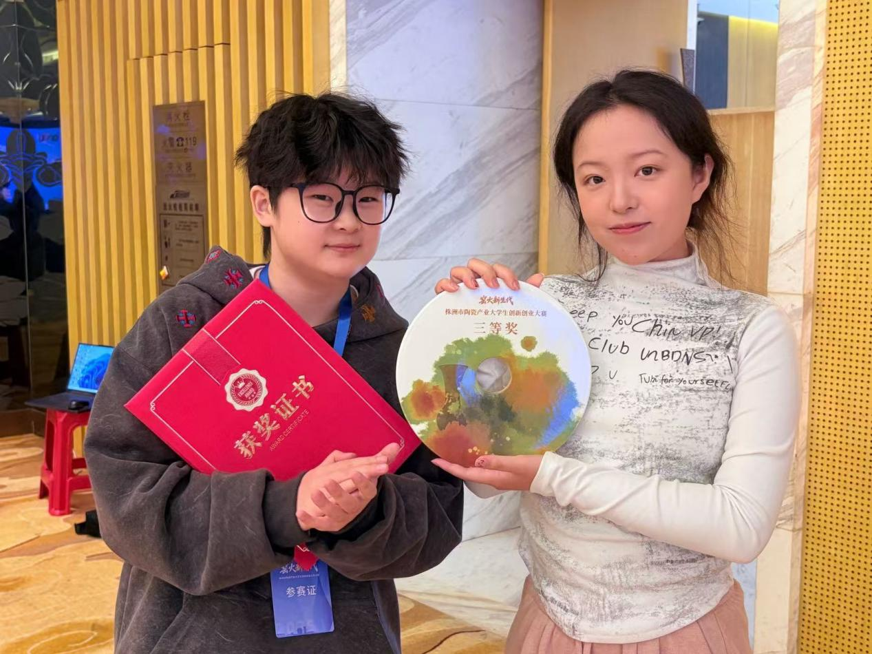 近日,“窑火新生代”株洲市陶瓷产业大学生创新创业大赛决赛暨颁奖仪式在醴陵举行。beat365官网设计艺术学院产品设计专业学生在比赛中表现突出,共提交11件作品并全部通过初选,其中3件作品进入终评环节。其中,由陈冰然同学带领的设计团队创作的原创文化IP项目“瓷越边界”获三等奖。