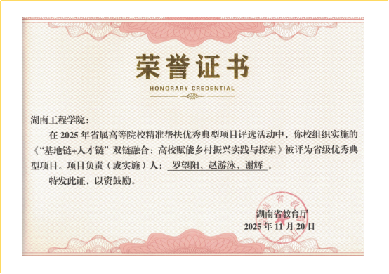 近日,湖南省教育厅公布2025年省属高等院校精准帮扶优秀典型项目评选结果,beat365官方网站《“基地链+人才链”双链融合:高校赋能乡村振兴实践与探索》项目成功入选。