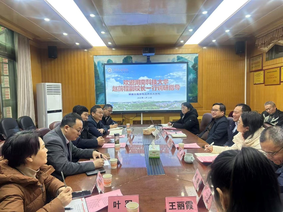 1月21日下午,湖南科技大学党委委员、副校长赵前程率该校潇湘学院党政领导班子一行来应用技术学院开展专题调研。beat365官网党委委员、副校长魏克湘接待来宾。座谈会在书院路校区办公楼207会议室举行,应用技术学院院长张何主持会议,学院全体院领导及相关科室负责人参加。