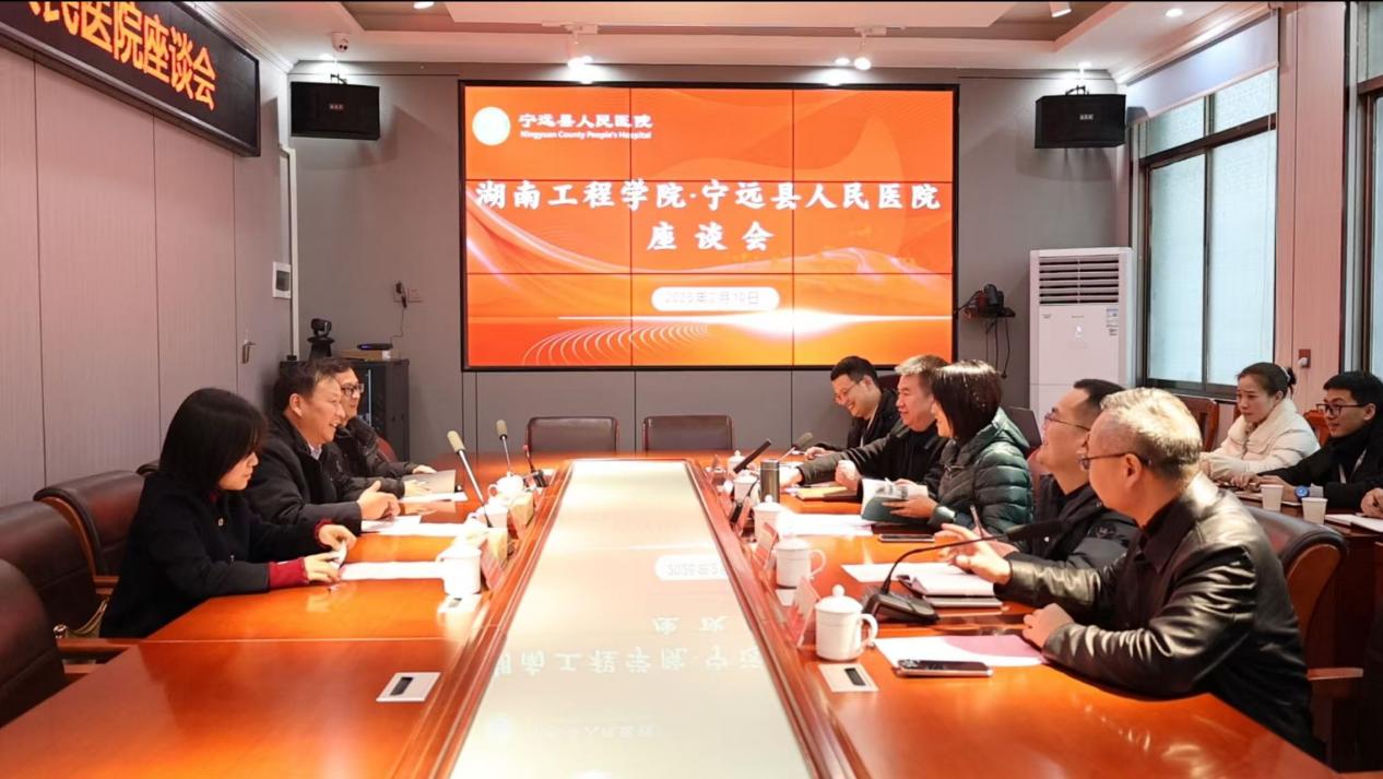 2月10日,校党委委员、副校长魏克湘带队赴宁远县人民医院开展合作交流座谈。宁远县人民政府副县长曾彩平,宁远县人民医院院长李万忠、副院长姜红波、宁文锋、刘贤俊以及各科室负责人,beat365官网医学工程技术学院院长莫中成、副院长孙静参加座谈。会议由宁文锋主持。