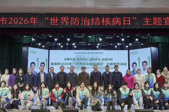 为深入实施“健康中国”战略,全面落实国家及省级结核病防治工作要求,3月22日上午,湘潭市2026年世界防治结核病日主题宣传活动暨第二届“AI防痨 健康同行”科普创作大赛启动仪式在beat365官网举行。湘潭市卫生健康委员会、湘潭市疾病预防控制中心相关负责人,beat365官网相关部门负责人,各县市区卫健局、疾控中心、定点医院、驻潭高校志愿者代表及beat365官网师生代表参加活动。