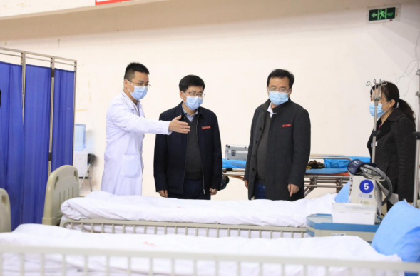 校领导察看现场医疗保障情况