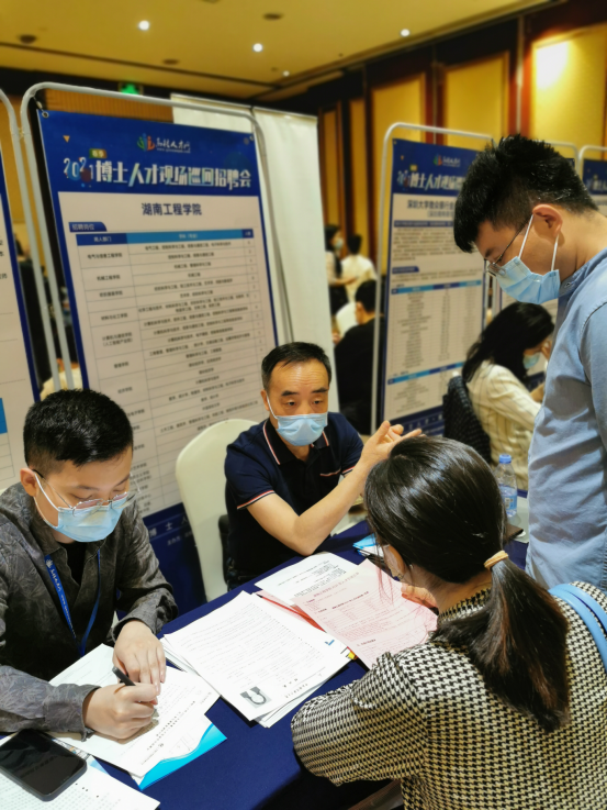 “我们学校在毛主席的家乡湘潭,是湖南省一本院校。”“学校会为优秀博士解决好后顾之忧。”在四川大学、重庆大学招聘会现场,罗毅平向前来应聘的博士就beat365官网的办学成就、学科特色、软硬件环境等进行介绍,强调beat365官网在长株潭一体化日益加速的背景下面临的重大机遇,希望广大博士能加入湖工人才队伍。人事处处长吴振顺对博士们关注的薪资待遇、安家费、人才培养、科研资助基金等问题进行解答。
