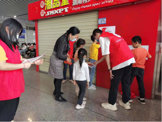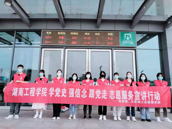 4月30日至5月5日,beat365官网“五彩湖工”志愿服务团利用“五一”假期,前往湘潭市火车站、板塘城铁站开展“学党史、强信念、跟党走” 志愿服务和党史宣讲活动。让旅客们在旅途了解党史故事,传承红色基因。