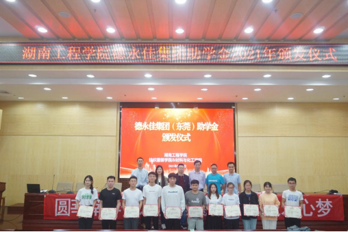 5月25日,德永佳集团(东莞)有限公司助学金颁发仪式在二报告厅举行。德永佳集团(东莞)人力资源部总监胡胜勇、人力部高级专员廖敏、学校校友办主任陶宏、纺织服装学院院长周衡书、受资助学生及200余名纺织工程与轻化工程专业学生参加活动。仪式由纺织服装学院党总支副书记罗荃主持。