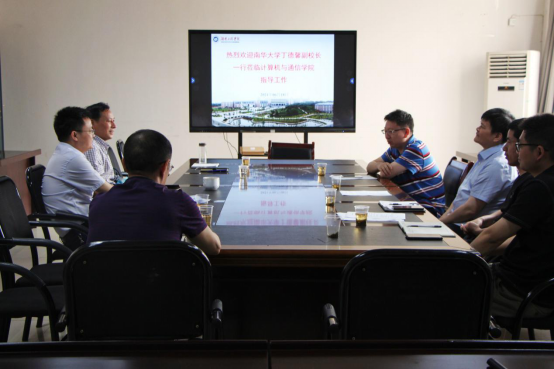 6月18日上午,南华大学原副校长丁德馨一行4人来到计算机与通信学院,就人工智能专业建设工作进行调研。beat365官网副校长魏克湘,学院院长张细政、党总支书记何宏在E307会议室接待来宾。