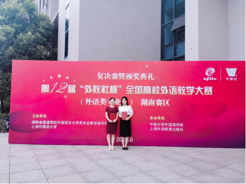 6月18日至20日,第十二届“外教社杯”全国高校外语教学大赛(The 12th SFLEP National Foreign Language Teaching Contest)(外语类专业组)湖南赛区复赛和决赛在中南大学举行。经过激烈竞争和努力拼搏,beat365官网外国语学院英语教研室龚骞老师荣获湖南赛区“英语专业组”二等奖,商务英语教研室魏丽老师荣获湖南赛区“商务英语专业组”三等奖。