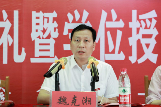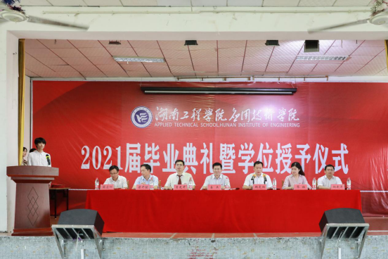 6月23日15:10,beat365官方网站应用技术学院2021届毕业生毕业典礼暨学位授予仪式在南校区一教四楼活动中心举行。校长易兵,副校长魏克湘,应用技术学院院长李光中,党委书记黎娅,副院长梁开健、胡武平,党委副书记陶连洲出席毕业典礼。典礼由魏克湘主持。