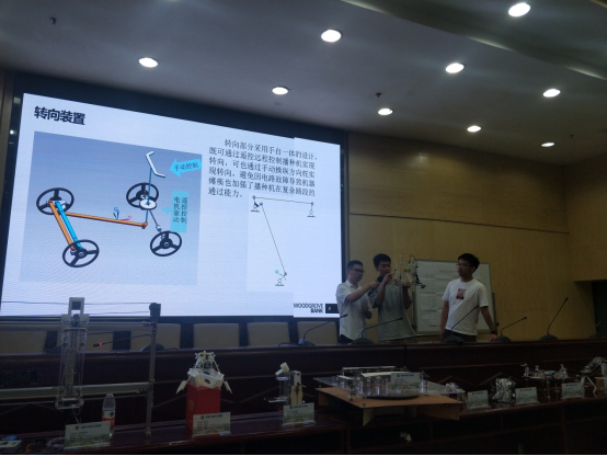 随后,参赛的16支队伍代表依次上场,就参赛作品的设计背景、工作原理、创新之处等内容进行汇报,并进行了作品操作展示。大赛的指导老师分别对每个作品进行精彩点评。通过激烈角逐,“多功能一体化自动播种机”“0号擦黑板装置”等五个作品凭借精彩表现获得一等奖,“仿生机器人”等五个作品荣获二等奖。