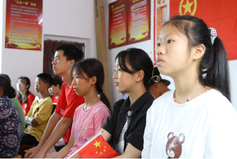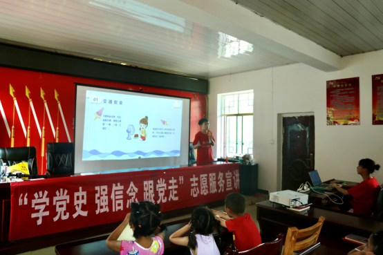 “红星闪闪放光彩,红星灿灿暖胸怀,红星是咱工农的,党的光辉照万代”“唱支山歌给党听,我把党来比母亲”……每天上午,铺坪村村部操场里便会响起稚嫩嘹亮的童声,志愿者们带着孩子们一起唱歌、读红书、讲述歌曲背后的故事。让孩子们在学唱歌的过程中,重温了共产党的百年光辉历程,用真切的感情唱响了“从小听党话,永远跟党走”的决心和信心。