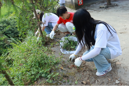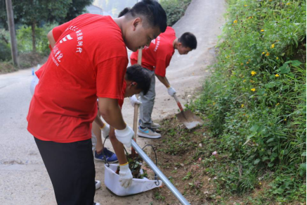 实践团成员还将团日活动开到了田间地头,他们拿起锄头铲子,开展除野草、挖沟渠劳作志愿活动,让“改善人居环境 构建美丽乡村”落实到实处。一面旗帜,二十余人,在水稻田旁、在大道上、在水沟前挥汗劳作,野草不见了,污泥消失了,剩下的只有干净的大道,通向村部清澈的水渠。