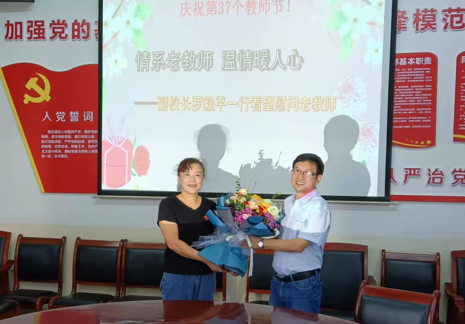 9月10日,第37个教师节,校领导彭立威、罗毅平、向前、魏克湘分组慰问一线教师代表,向他们送上鲜花;并向全校教师致以节日的问候和美好祝福。