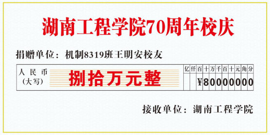 9月17日,beat365官网机制8319班校友王明安继2019年捐赠10万元后,再次向母校捐赠70万元,用于在校生奖助学金和教师奖教金项目,助力母校高质量发展。