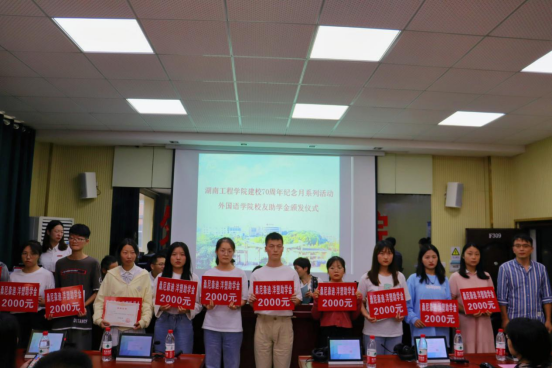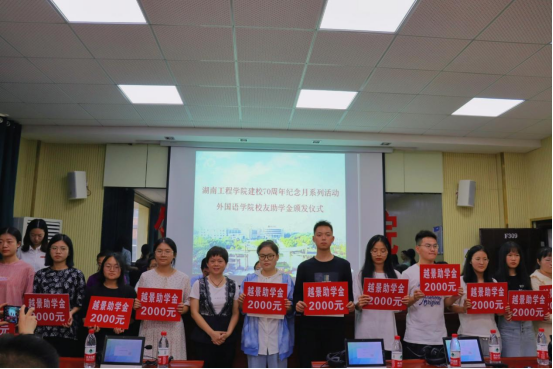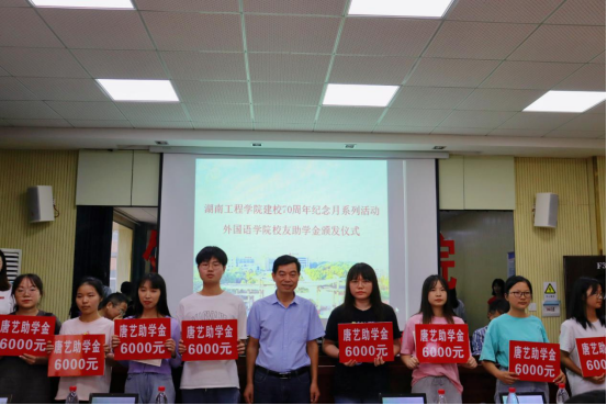 正值学校建校七十周年之际,10月6日下午,外国语学院举行“越景助学基金”“梓萌助学基金”“唐艺助学基金”“桑尼森迪-洋塑助学基金”“经贸英语96级助学基金”“经贸九七励志助学基金”等6大校友助学金颁发仪式。