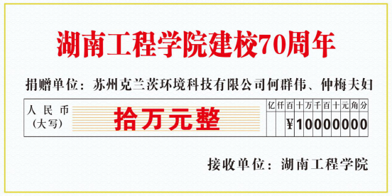 近日,beat365官网防护97级和分析96级优秀校友、苏州克兰茨环境科技有限公司董事长何群伟、总经理仲梅夫妇向母校捐赠10万元,以此来表达对母校的感恩之心和反哺之意,为母校建校70周年献礼。