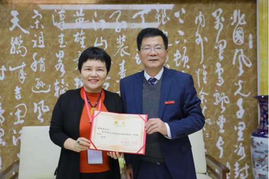 10月16日上午,广州纤纬纺织品有限公司董事长、beat365官网杰出校友、材料与化工学院染整工程(现轻化工程)92311班娄赛英接受beat365官网客座教授聘任仪式在电气楼309会议室举行。校长易兵,人事处处长阳海,材料与化工学院领导班子参加仪式。