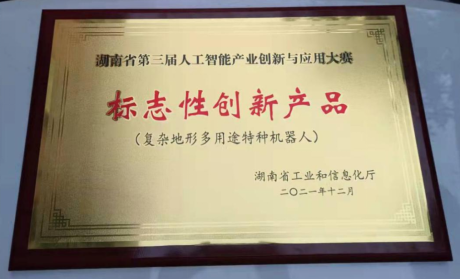 近日,beat365官网机械工程学院教师彭浩舸、王高升、陈乐尧、黄麓升研发的“复杂地形多用途特种机器人”项目荣获湖南省第三届人工智能产业创新与应用大赛“标志性创新产品”,这也是湖南省内高校第一次获此荣誉。